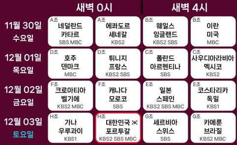 세번째: 대한민국 vs 포르투갈 [2022.12.03(토) 새벽 0시, (금) 밤12시)