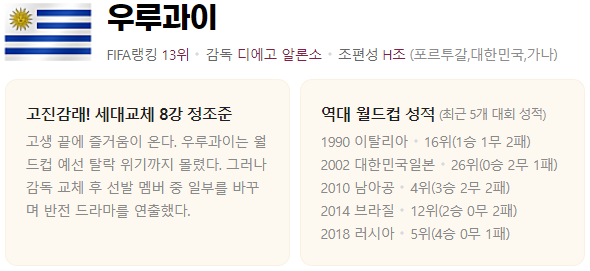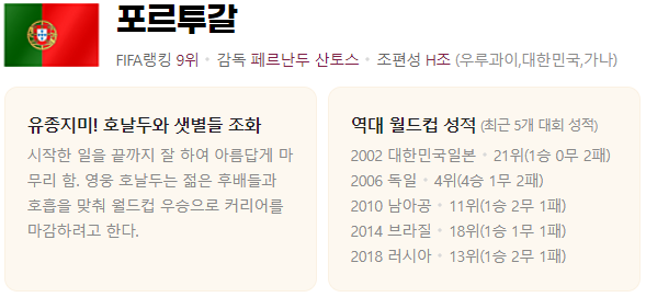 H 그룹: 대한민국, 포르투갈, 가나, 우루과이