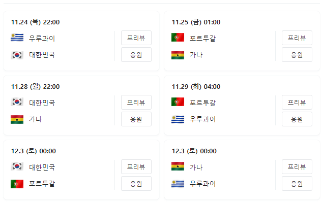 두번째: 대한민국 vs 가나 [2022.11.28(월) 밤 10시]