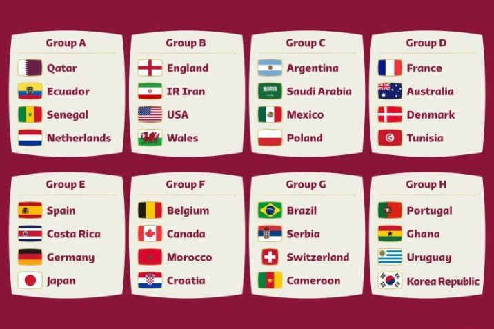 2022 카타르 월드컵 조편성/조별리그(4개국 * 8개 조)