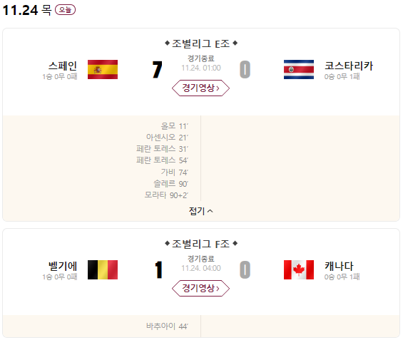 [~ 23일] 2022 카타르 월드컵 조별 경기결과 & 하이라이트 영상 모음