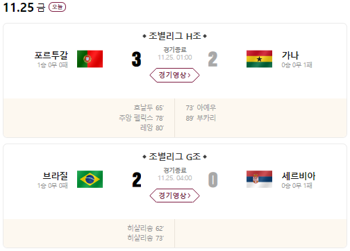 [2022.11.25.] 카타르 월드컵 조별 경기결과 및 하이라이트 영상!!