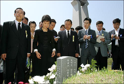 [오마이뉴스 손병관/이승후 기자] ▲ 한나라당 박근혜 대표가 5.18기념식이 끝나고 박관현 열사 묘소를 참배하고 있다. ⓒ 오마이뉴스 안현주 탄핵 기각 후 첫 ...