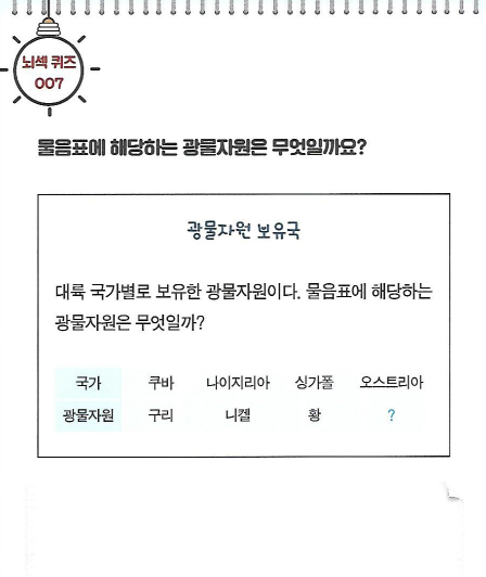 물음표에 해당하는 광물자원은 무엇일까요? 여러분의 상상력을 최대한 발휘해 보세요.
