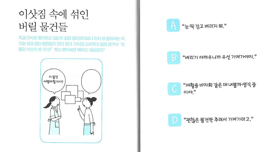 지금 이사를 준비하고 있는데 짐을 정리하다보니 이사 갈 집에서는 더 이상 필요 없는 물건들이 있다. 이사를 도와주고 있던 친구가 "이 물건 어떻게 할 거야?"하고 물어보면 뭐라고 대답할까?