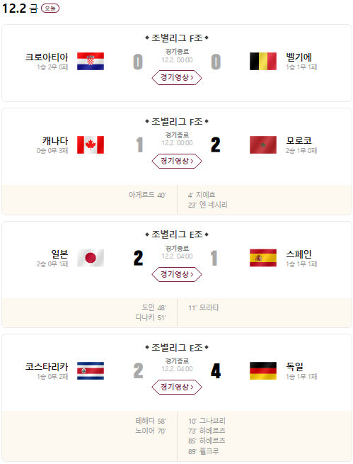 [2022.12.2.] 카타르 월드컵 조별 경기결과 및 하이라이트 영상!!