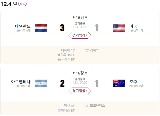 | [2022.12.6.]카타르 월드컵 16강 토너먼트 경기 결과 및 하이라이트 영상!! (8) | 2022.12.06 |