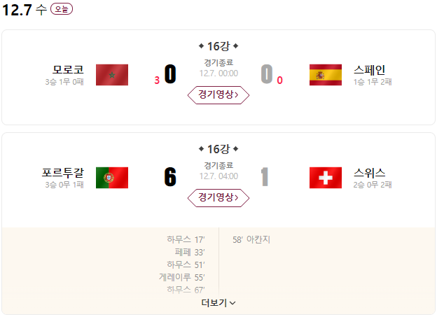 [2022.12.7.]카타르 월드컵 16강전 경기 결과 및 하이라이트 영상!!