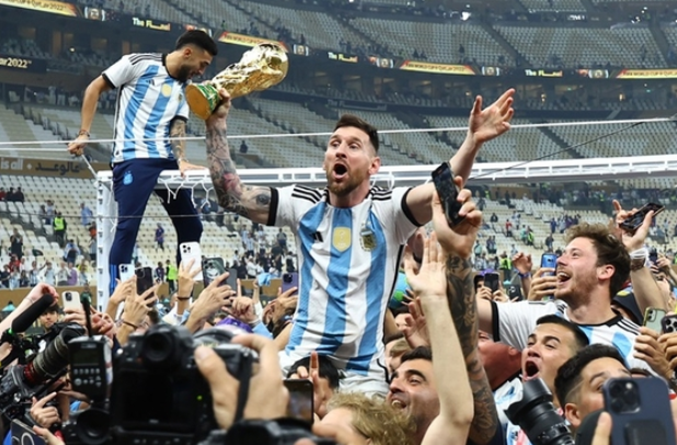 월드컵 트로피, 우승컵을 들어올리는 골든볼(대회 최우수 선수상) 리오넬 메시!!