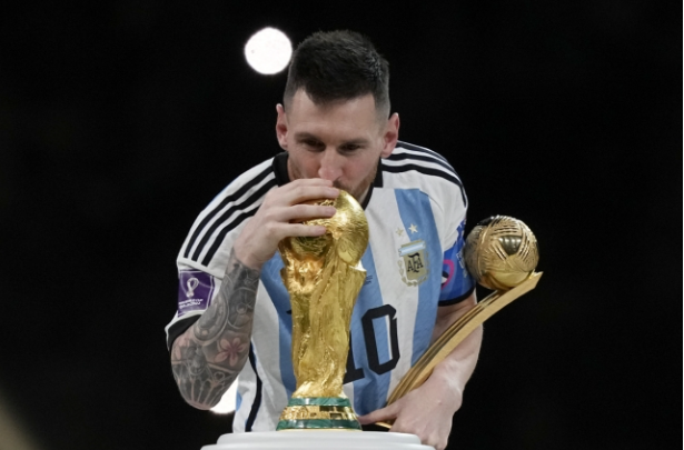 월드컵 트로피, 우승컵을 들어올리는 골든볼(대회 최우수 선수상) 리오넬 메시!!