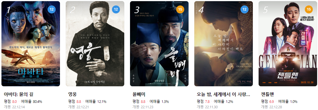 하지만 <아바타2 물의길>은 엄청난 제작비가 투입된 만큼 역대 세계 흥행 기록 5위 안에 들어야 손익분기점을 넘는다고 합니다. 그래도 문안하게 달성할 수 있을 것으로 판단되지만 지켜보는 재미도 있을 거 같습니다.