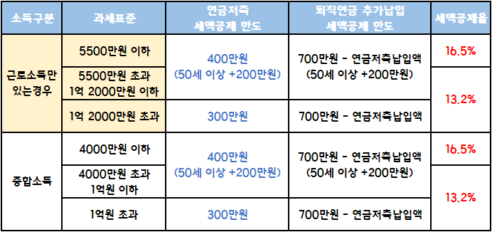 [연금저축/ IRP 세액공제율 Table]