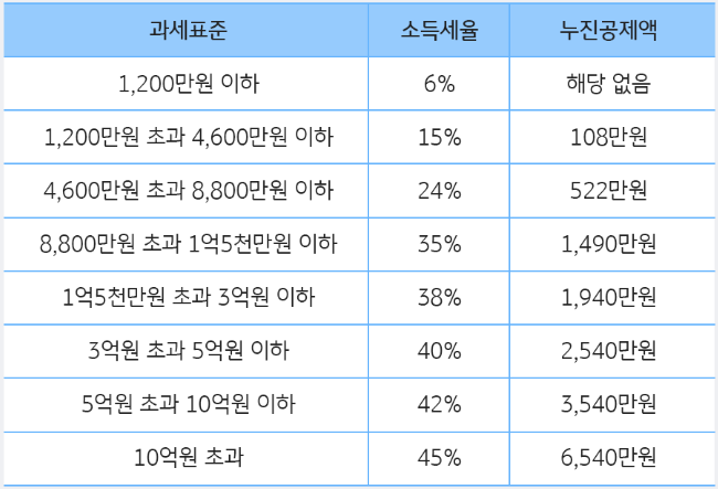 2. 산출된 과세표준에 해당 구간의 소득세율을 곱한다 → 산출세액