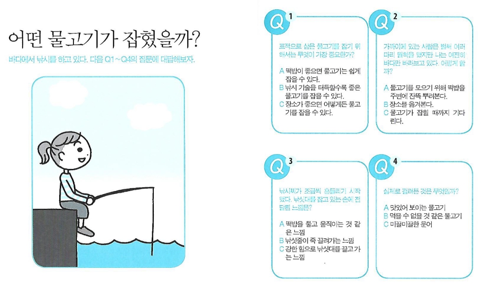바다에서 낚시를 하고 있다. Q1~Q4의 질문에 대답해보자.