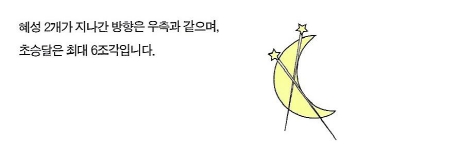 혜성 2개가 지나간 방향은 아래 그림과 같으며, 초승달은 최대 6조각 입니다.