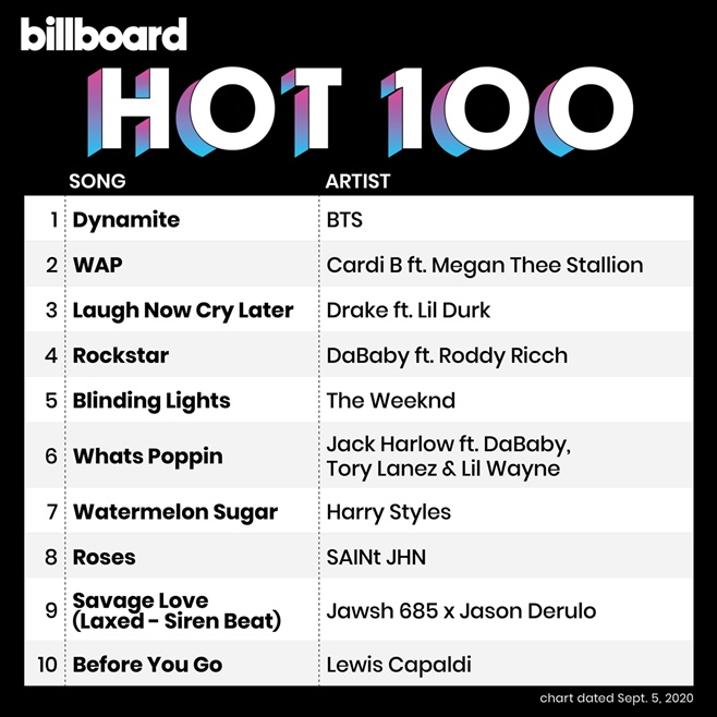 ▶2020년 방탄소년단의 Dynamite가 빌보드 핫 100 1위