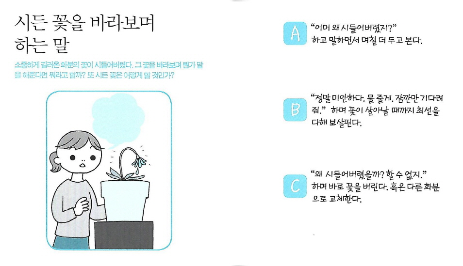 소중하게 길러온 화분의 꽃이 시들어버렸다. 그 꽃을 바라보며 뭔가 말을 해준다면 뭐라고 할까? 또 시든 꽃은 어떻게 할 것인가?