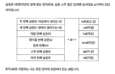 삼촌은 내(영어단어) 앞에 붙는 철자로써, 삼촌 스무 명은 알파벳 순서대로 a(1)부터 t(20)까지입니다. 모두(all)를 사랑하는 나는 모든 단어에 포함되어 있는 all입니다.