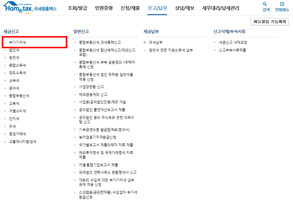 ☞ 부가세 조기환급 신고는 아래와 같은 방법으로 하실 수 있습니다.